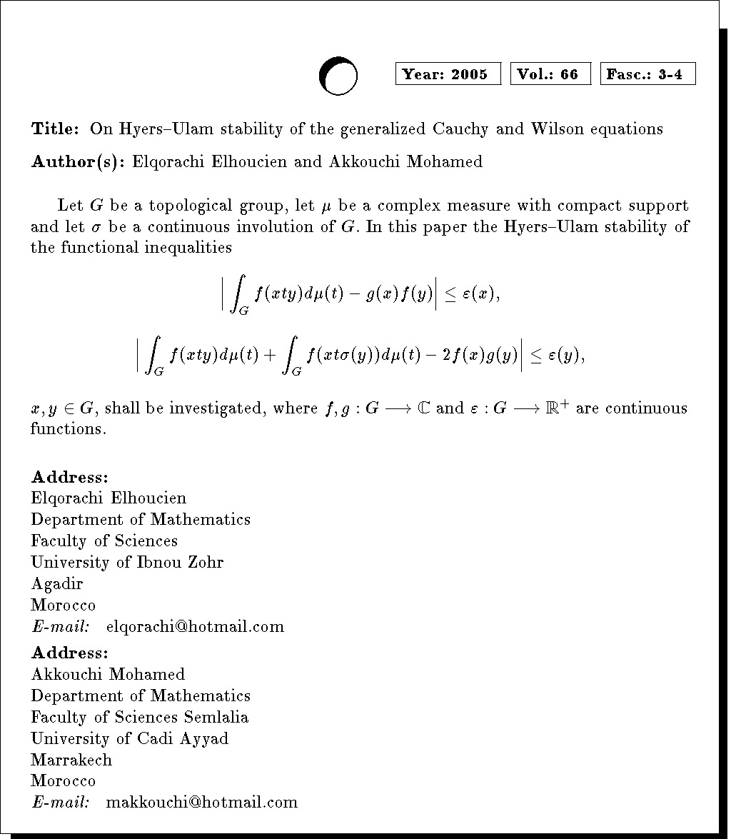 Mathematics Subject Classification: 39B72, 39B82, 39B52