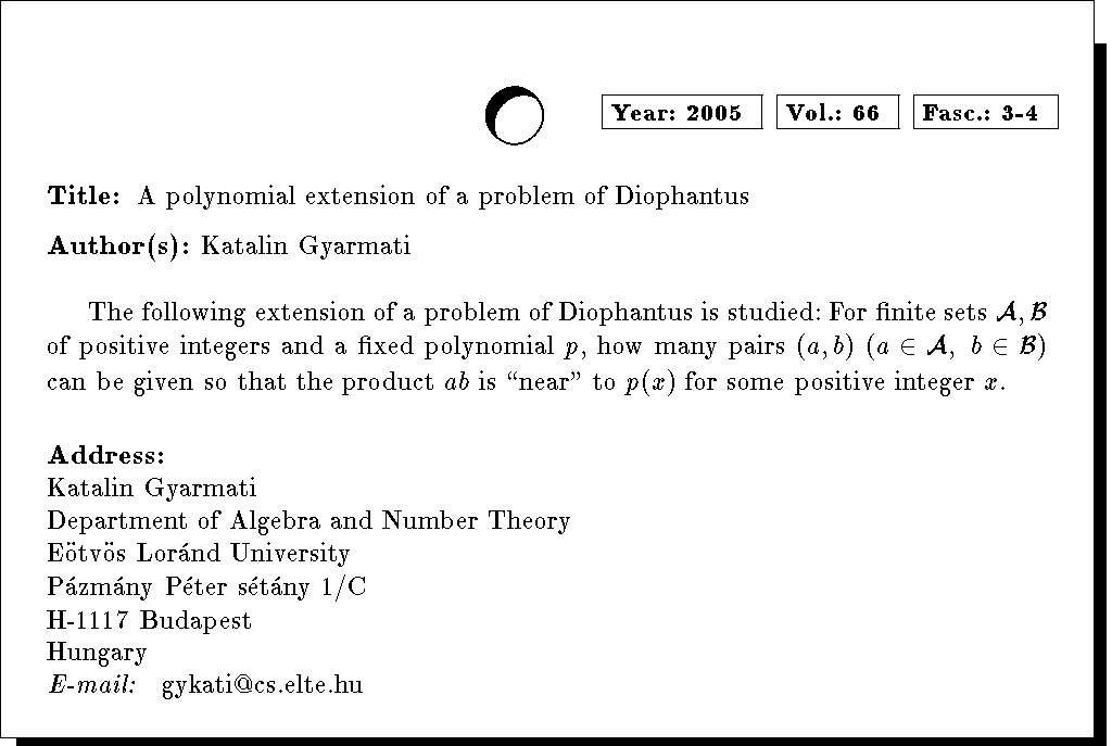 Mathematics Subject Classification: 11D45
