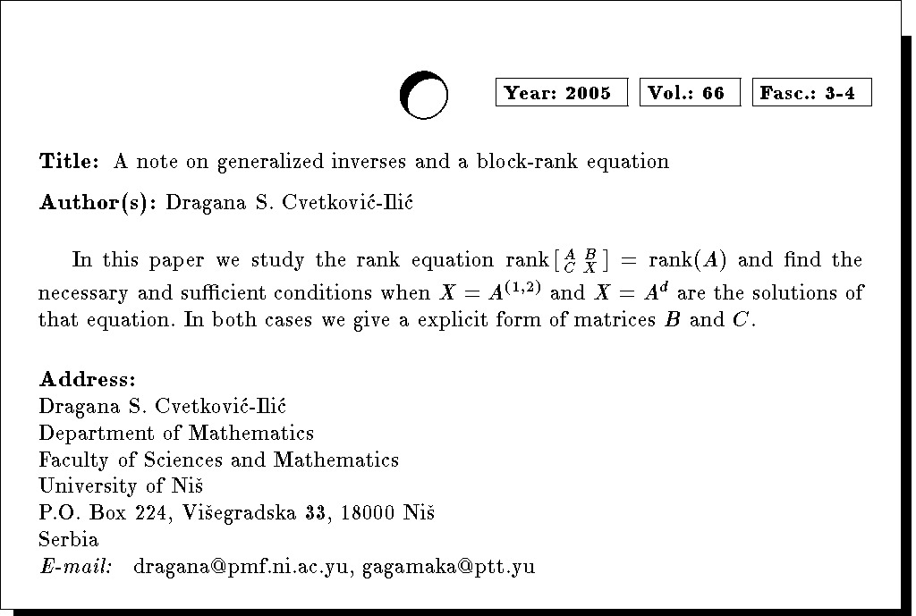 Keywords: rank equation, generalized inverses, Drazin inverse