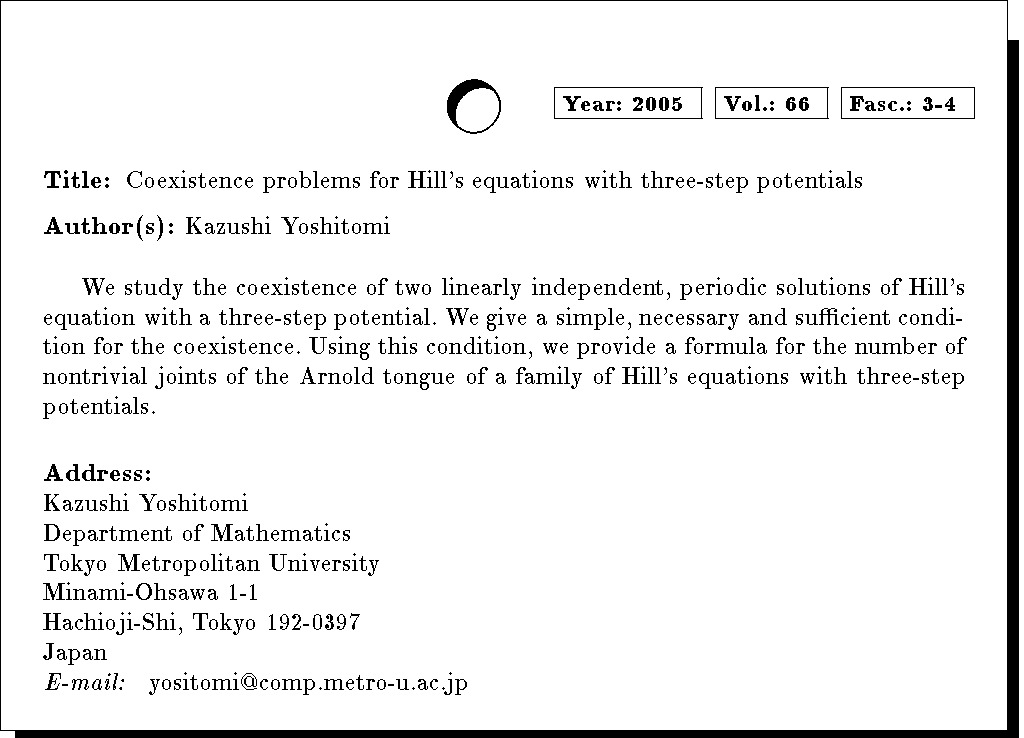 Keywords: Hill's equation, three-step potential, coexistence, monodromy matrix