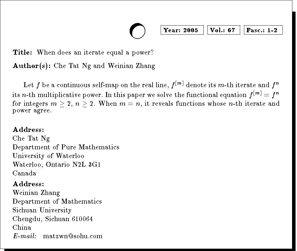 Mathematics Subject Classification: 39B12, 37E05, 39B22