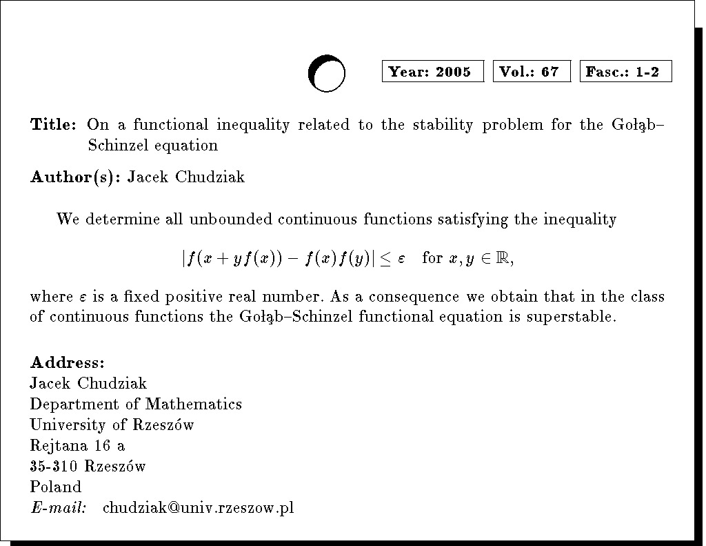 Mathematics Subject Classification: 39B22, 39B82