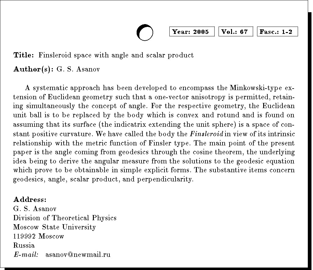 Keywords: Finsler space, metric space, indicatrix, geodesics