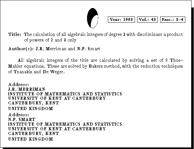 The calculation of all algebraic integers of degree 3 with discriminant a product of powers of 2 and 3 only