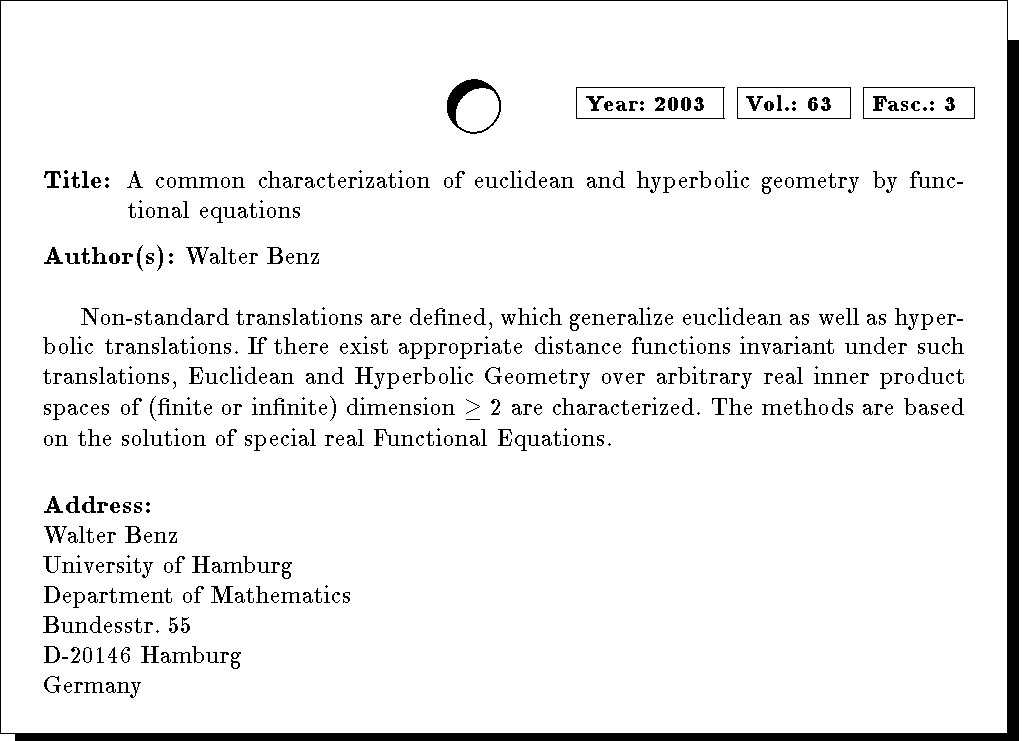 Mathematics Subject Classification: 39B22, 39B72, 51M05, 51M10