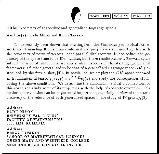 Mathematics Subject Classification: 53B40, 83D05