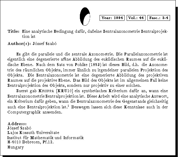 Eine analytische Bedingung dafür, daß eine Zentralaxonometrie Zentralprojektion ist