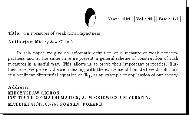Keywords: measures of weak noncompactness, Banach spaces, nonlinear differential equations, bounded weak solutions of differential equations, function spaces