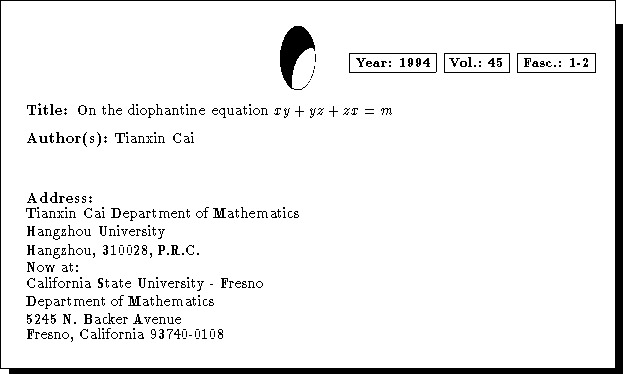 Mathematics Subject Classification: 11D09, 11D85