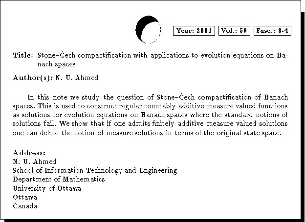 Keywords: Stone-Čech compactification, finitely additive measures, evolution equations, measure solutions