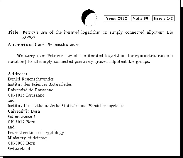 Keywords: Petrov's LIL, simply connected nilpotent Lie group