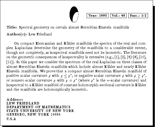 Mathematics Subject Classification: 53C25, 53C55, 58G25