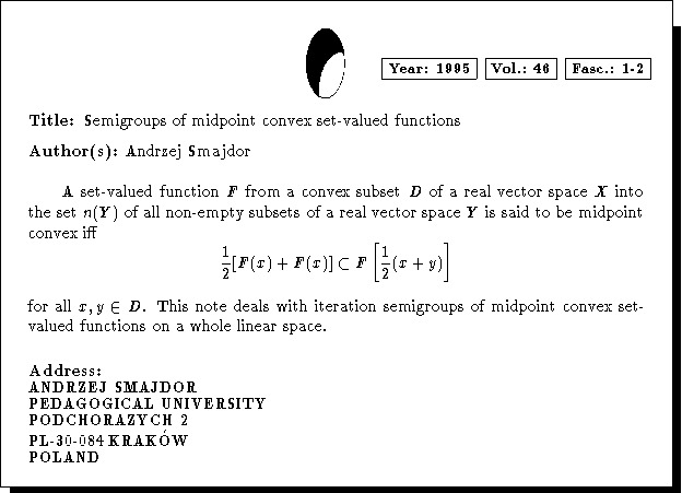 Keywords: midpoint convex set-valued functions, iteration semigroups