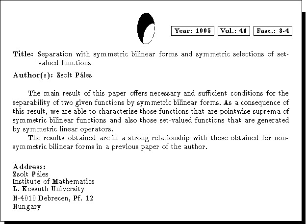 Keywords: set-valued functions, symmetric additive selections, separation with symmetric bilinear forms, Hahn-Banach theorem