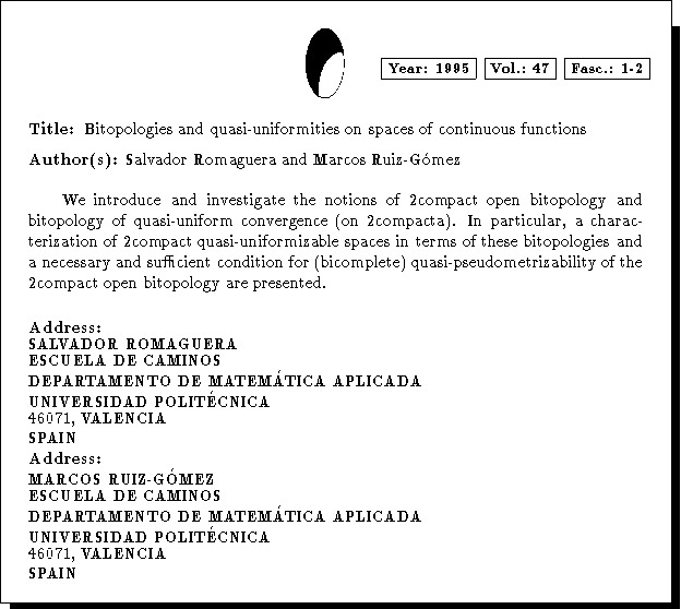 Mathematics Subject Classification: 54E55, 54C35, 54E15, 54D30, 54E35, 54E50