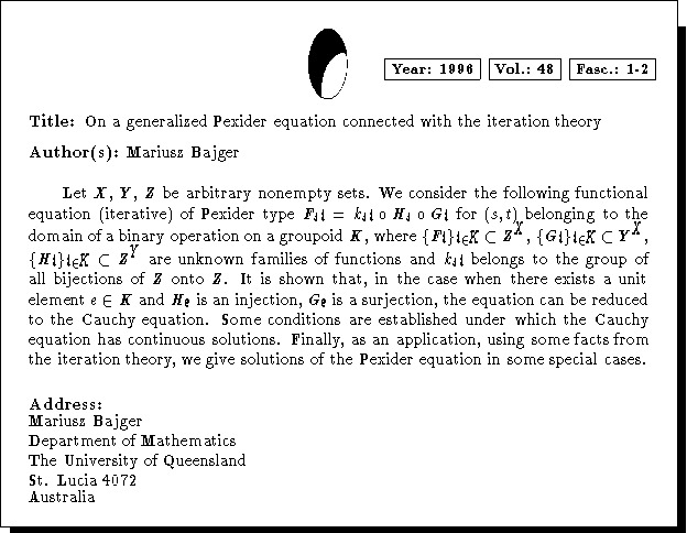 Mathematics Subject Classification: 39B10, 39B50, 39B22, 39B52