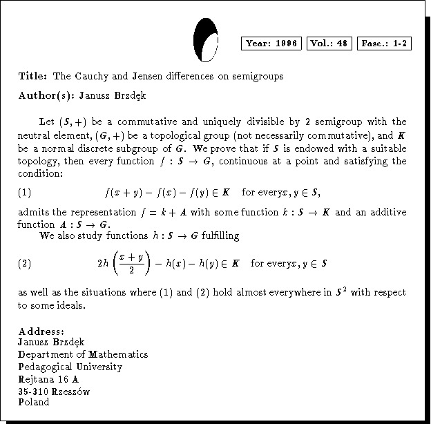 Mathematics Subject Classification: 39B52