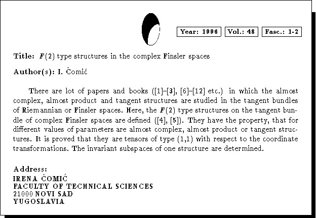 Keywords: complex Finsler spaces, F(2) type structures, almost complex structures, almost product structures, tangent structures