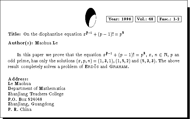 Mathematics Subject Classification: 11D61, 11J86