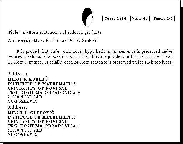 Keywords: reduced products, Horn sentences, topological structures, $L_2$-language, $L_t$-language