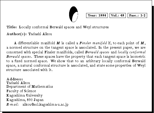 Mathematics Subject Classification: 53B40
