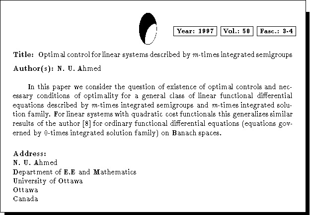 Keywords: optimal control theory, m-time integrated semigroups, m-times integrated solution family, functional differential equations, Banach spaces, existence, necessary conditions