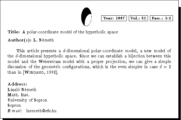 A polar-coordinate model of the hyperbolic space