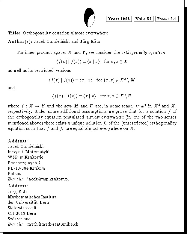 Mathematics Subject Classification: 39B52, 46C05
