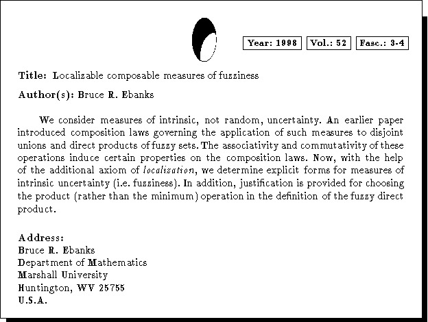 Keywords: measures of fuzziness, uncertainty, fuzzy sets, functional equations, fuzzy direct product, localization, composability