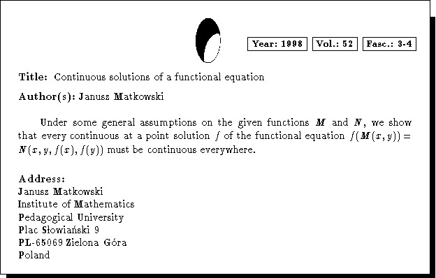 Keywords: functional equation, continuous solutions, uniqueness theorem