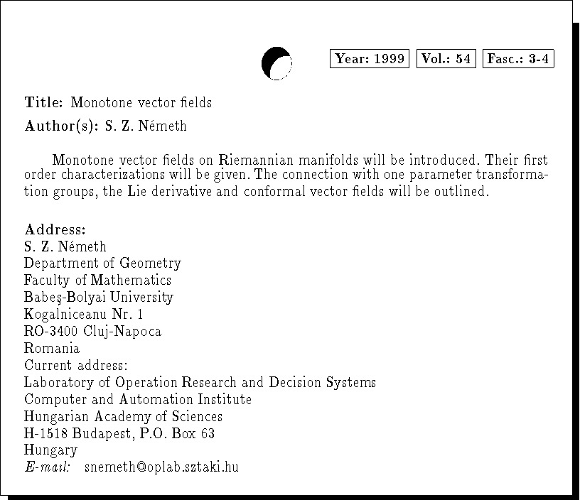 Keywords: Minty-Browder monotonicity, monotone vector fields, geodesic convex set, geodesic convex function, scalar derivative, expansive transformation groups, Killing vector fields, Lie derivative, conformal vector fields