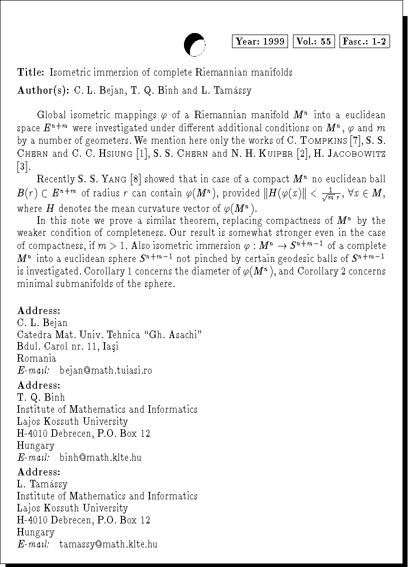 Mathematics Subject Classification: 53C20, 53C40, 53C42