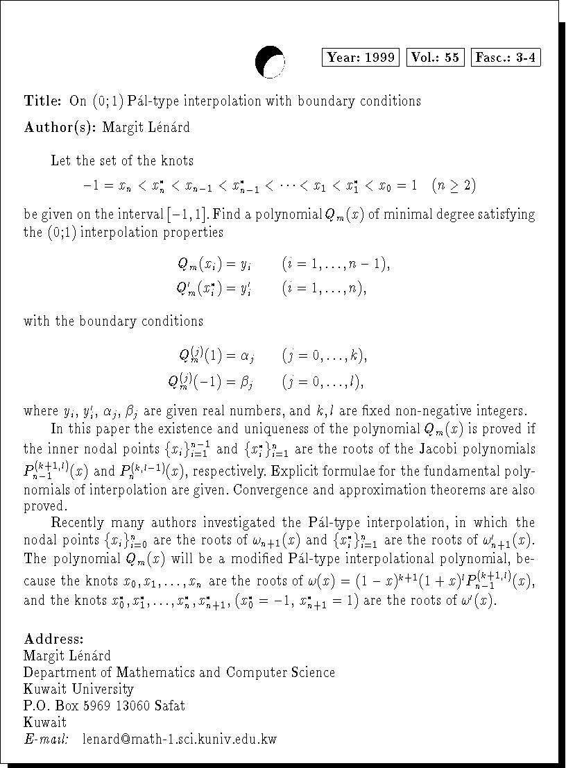 Keywords: Birkhoff interpolation, Pál-type interpolation