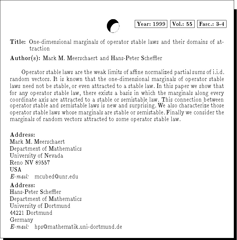 Keywords: operator stable laws, domains of normal attraction, stable laws, semistable laws, marginals
