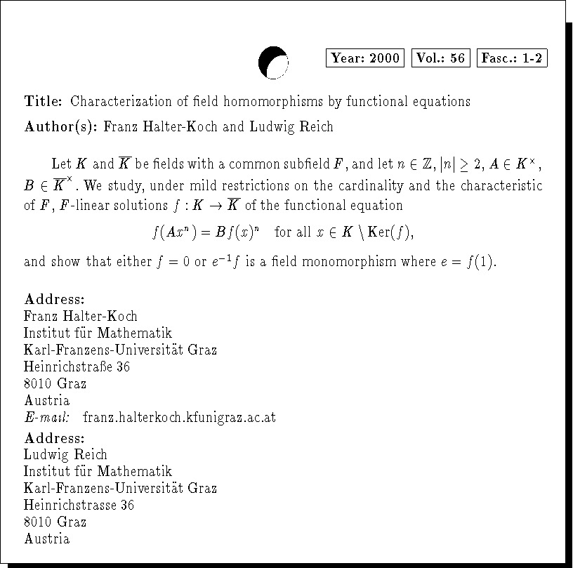Mathematics Subject Classification: 39B52, 39B62, 11E99