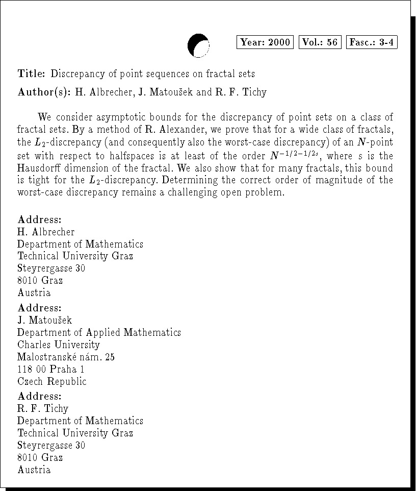 Mathematics Subject Classification: 11K41, 60B05, 28A80