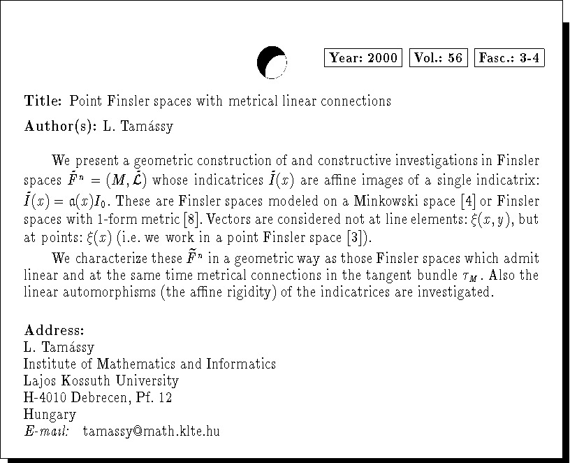 Keywords: Finsler spaces, metrical linear connection