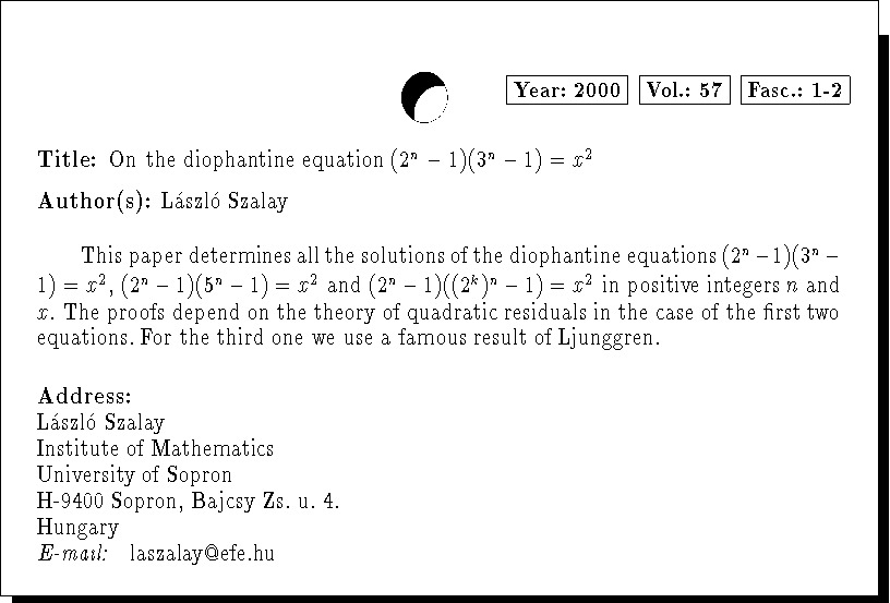 Mathematics Subject Classification: 11B, 11D11D61