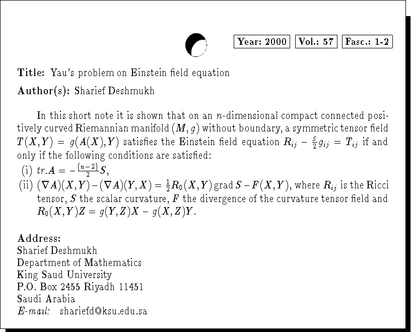 Keywords: curvature tensor field, Ricci tensor, scalar curvature, divergence