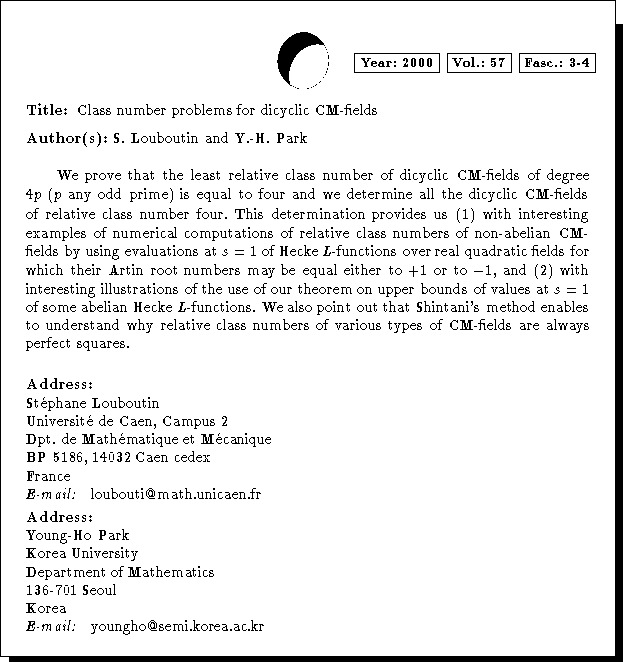 Mathematics Subject Classification: 11R29, 11R42, 11R20, 11R37, 11Y40