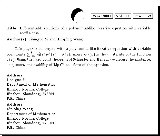 Mathematics Subject Classification: 39B12, 58F08