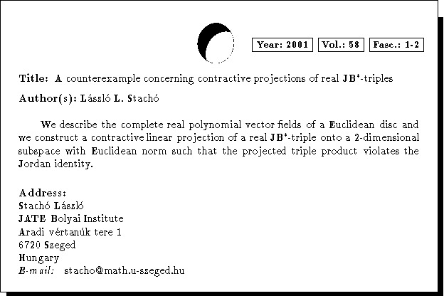 Keywords: JB*-triple, real Jordan triple, complete vector field, contractive projection