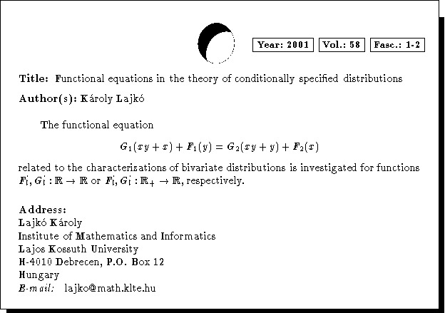 Keywords: characterizations of bivariate distributions, functional equations, general and measurable solutions