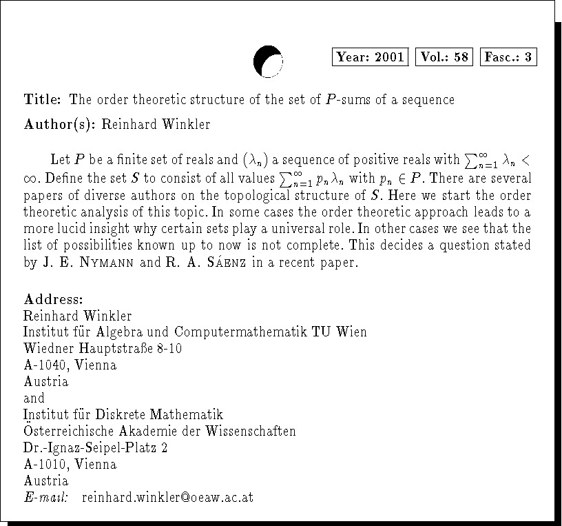 Keywords: digital expansion, sets of P-sums, Cantor set, Cantorval, coloured ordering, order topology