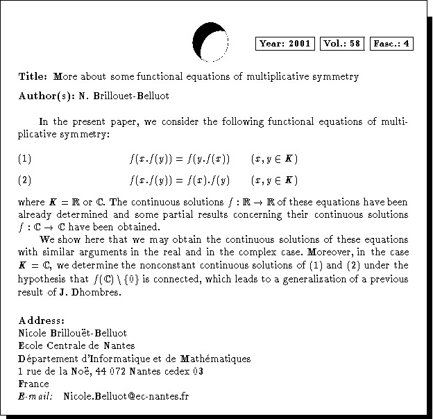 Mathematics Subject Classification: 39B22, 39B32