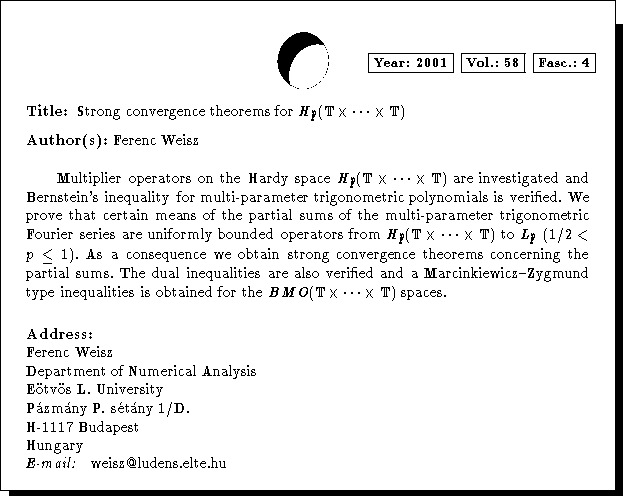 Keywords: Hardy spaces, multiplier operators, Bernstein's inequality, strong means