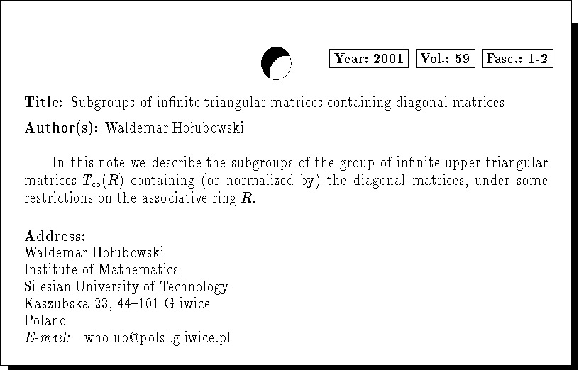 Keywords: infinite triangular matrix, diagonal matrix, lattice of subgroups