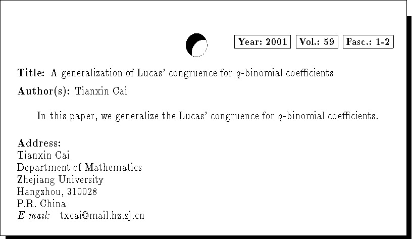 Keywords: Lucas' property, Kummer's ''carries'', q-binomial coefficients