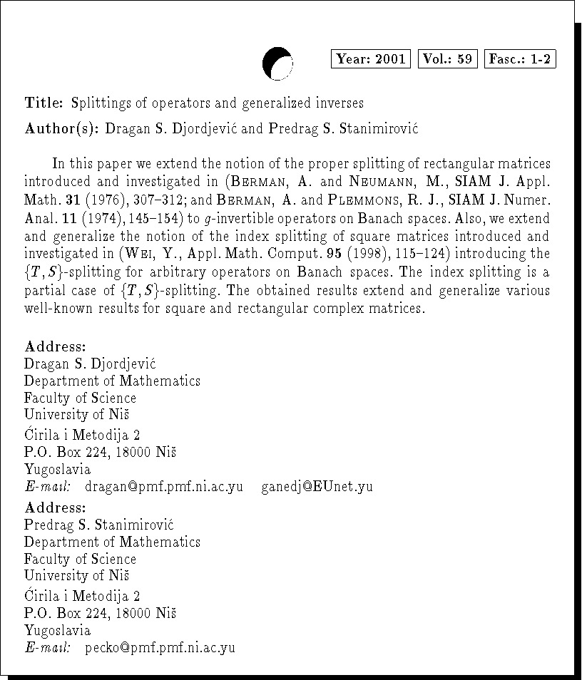 Keywords: generalized inverses, splittings of operators, iterative methods