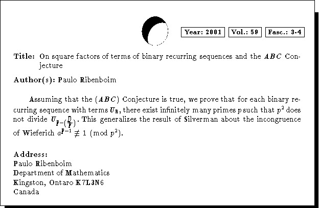 Keywords: ABC conjecture, wieferich congruence, binary recurring sequence, powerful numbers